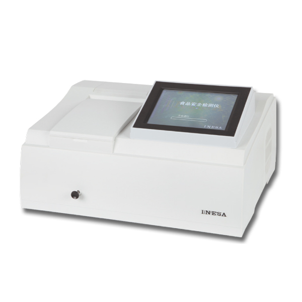 ,酶催化神經(jīng)傳導(dǎo)代謝產(chǎn)物(乙酰膽堿)水解,其水解產(chǎn)物與顯色劑反應(yīng),產(chǎn)生黃色物質(zhì),用分光光度計測定412nm下吸光度隨時間的變化值,計算出抑制率,通過抑制率可以判斷出樣品中是否含有有機磷或氨基甲酸酯類農(nóng)藥的殘留?梢詫崿F(xiàn)有機磷及氨基甲酸酯類農(nóng)藥殘留量的現(xiàn)場快速檢測。